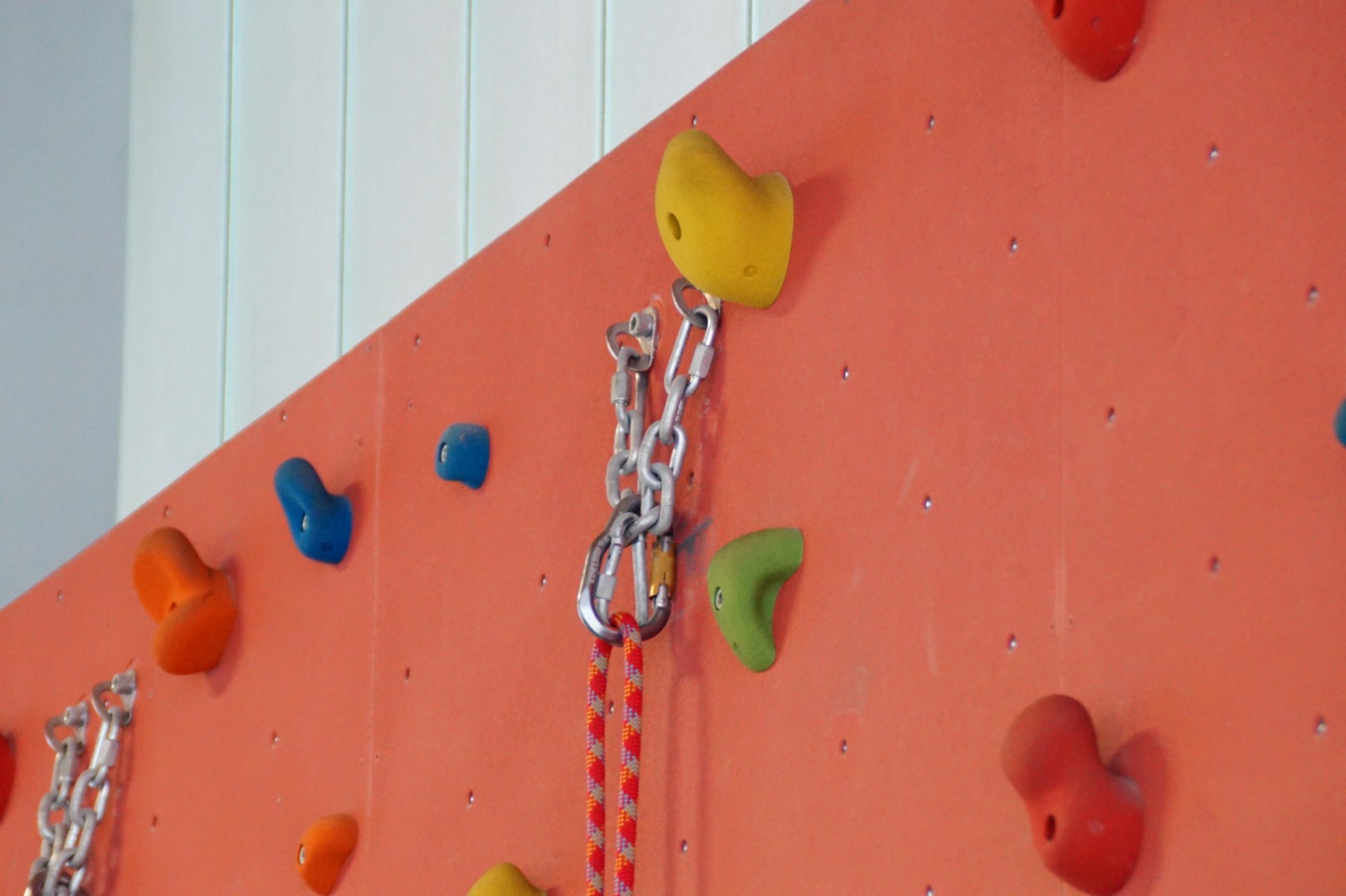 Erwähnenswert ist auch unsere eigene Kletterwand (7,5m Höhe), an der wir richtig mit Sicherung klettern und unser Beach-Volleyballfeld, welches im Sommer intensiv genutzt wird.