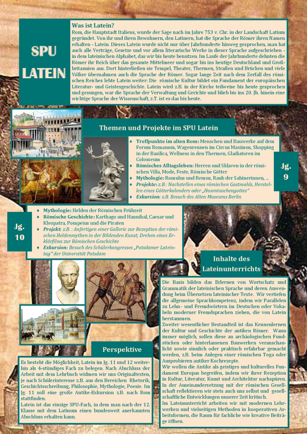 Am Ende der Jahrgangsstufe 12 erhalten die Schüler bei erfolgreichem Bestehen des Kurses das Latinum.
