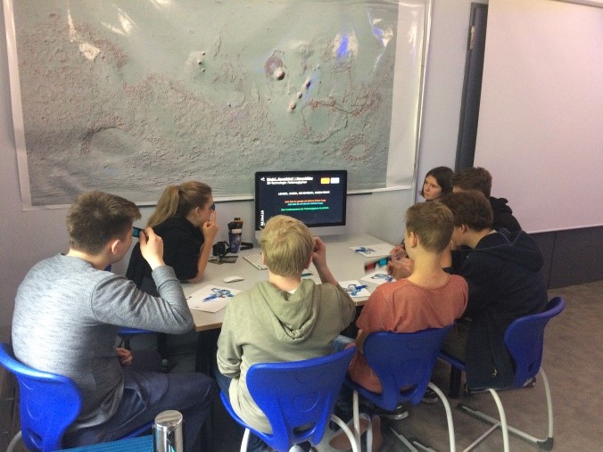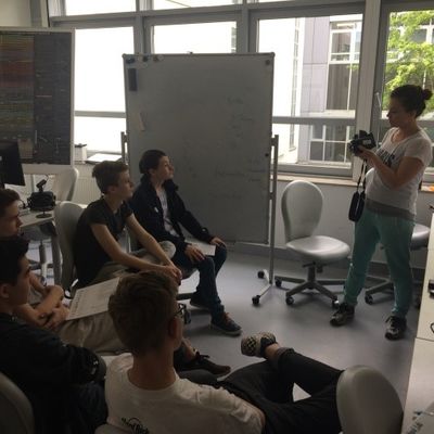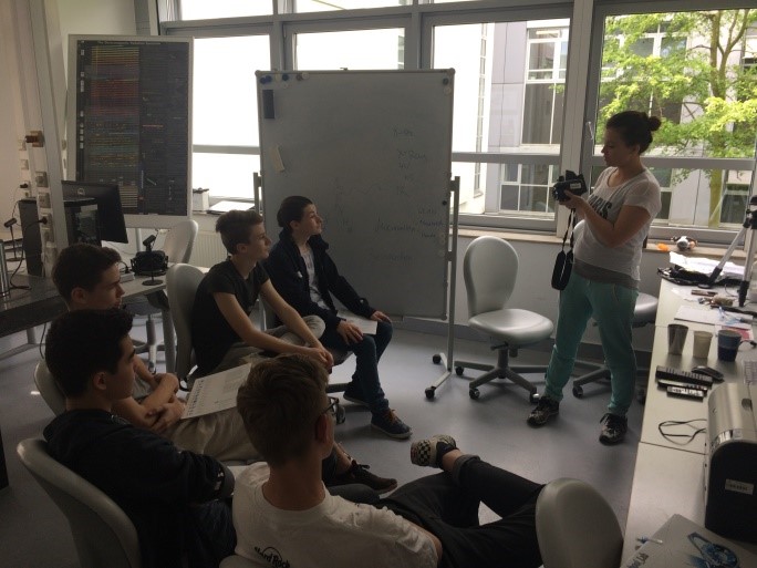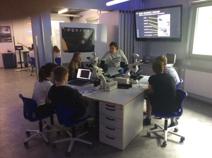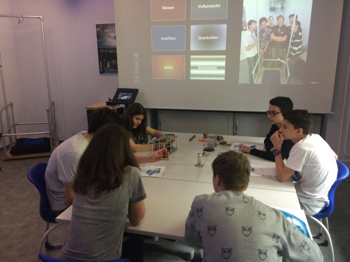 Im DLR Berlin besuchten wir das DLR_School_Lab. Für Schulklassen gibt es die Möglichkeit in den oben genannten Themenfeldern zu experimentieren. Unser Kurs hat Experimente aus dem Bereich Raumfahrt durchgeführt. Dazu wurde der Kurs in 4 Gruppen eingeteilt, jede Gruppe konnte an diesem Tag zwei Experimente durchführen.