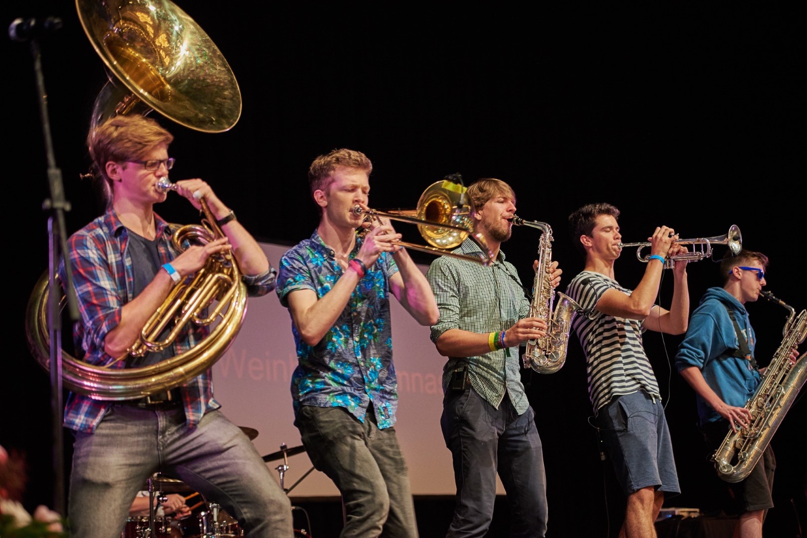 Außerdem wurde eine Einweihungsralley über das gesamte Gelände veranstaltet, sportliche Schülerinnen und Schüler konnten ihr Geschick beim Bierkastenstapeln in der Sporthalle zeigen und für Tanzfreudige gab es einen Hip Hop Dance-Workshop in der großen Aula. Zum Abschluss spielte die Kleinmachnower Band Duke Brass mit ehemaligen Weinberg-Schülern ebenfalls in der neuen Mensa.