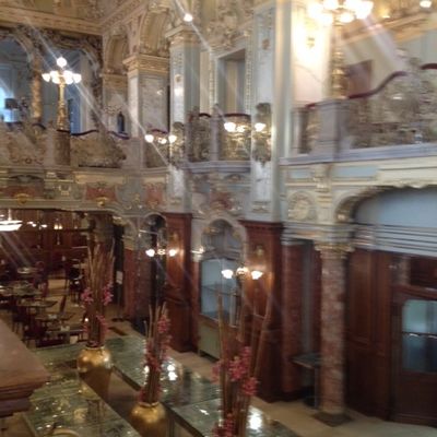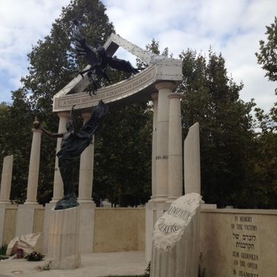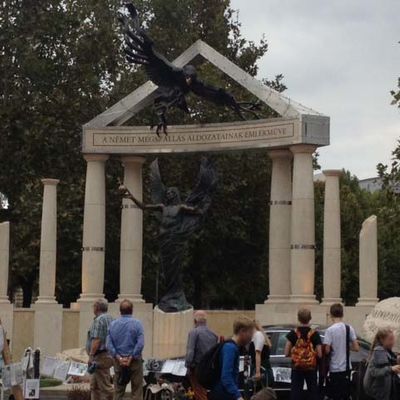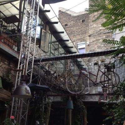 Oben auf den Fotos sind das Café Lotz, das Szimpla Kert Budapest, ein neues sehr umstrittenes Mahnmal auf dem Freiheitsplatz sowie das Parlament zu sehen.