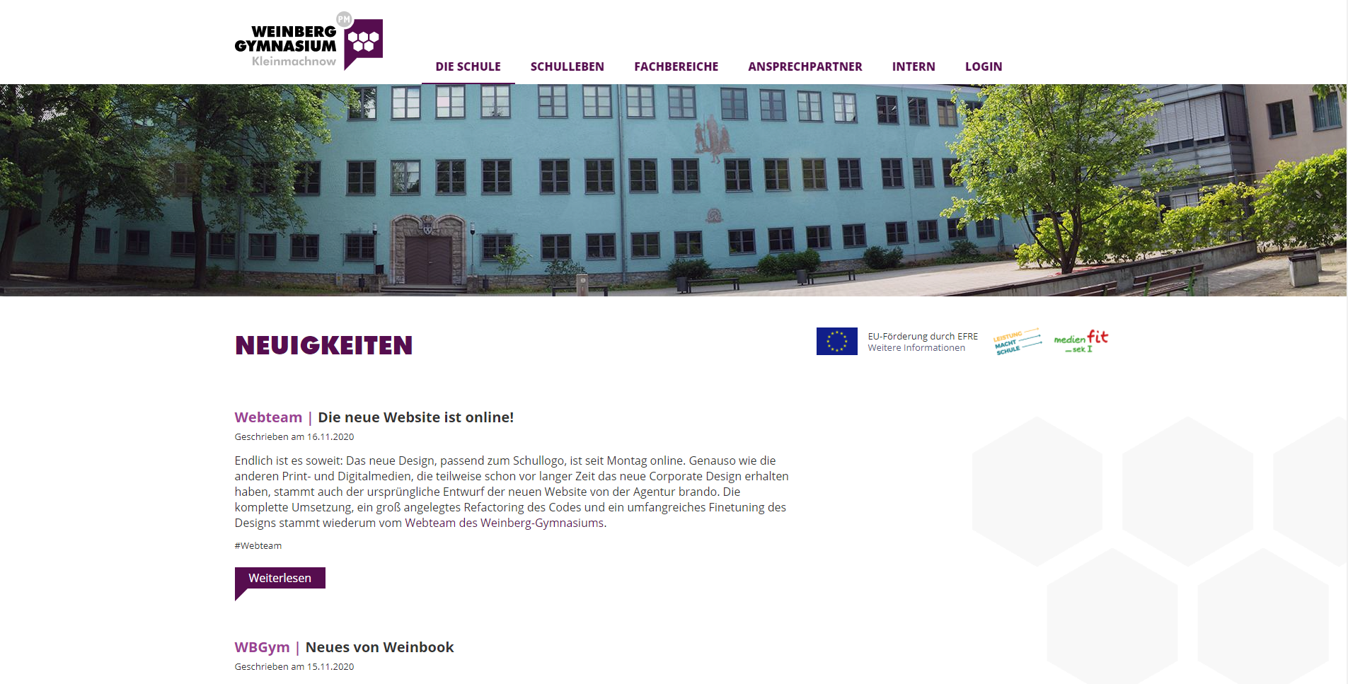Fünf Jahre später, im November 2020, fand ein weiterer Relaunch statt. Das Webteam hat dafür das neue Corporate Design der Schule, inkl. neuem Logo, welches durch eine externe Agentur entworfen wurde, für die Website umgesetzt. Auch wenn die Design-Vorlage von der Agentur stammte, erfolgte die gesamte Umsetzung und Finetuning des Designs durch aktuelle und ehemalige Schüler der Schule. Dabei hat sich einiges geändert, und vor allem wurde viel Code modernisiert, aufgeräumt und zukunftsfähig gemacht. Trotzdem ist das generelle Konzept der Website erhalten geblieben, da es sich bis dato bewährt hatte.