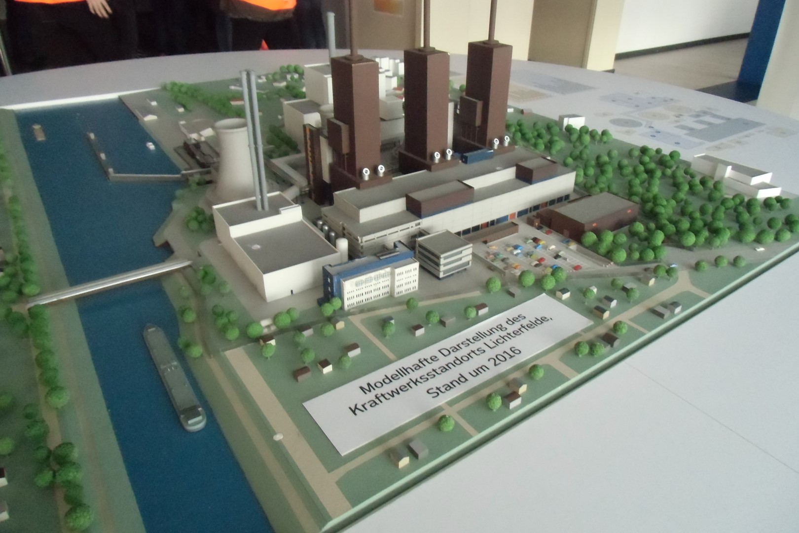 Nun wurden wir mit Sicherheitsbekleidung ausgestattet und begannen eine Besichtigungstour durch das Kraftwerk. Der Rundgang führte uns zuerst durch das Maschinenhaus mit den Turbinen und Generatoren, bis hin zum Kontrollraum der Anlage. Danach ging es auf das Dach. Von hieraus hatte man einen sehr schönen Blick über Berlin und die Baustelle des neuen Kraftwerks. Durch das sehr warme und laute Kesselhaus, vorbei am Keller mit den Fernheizpumpen ging es zurück zum Startpunkt.