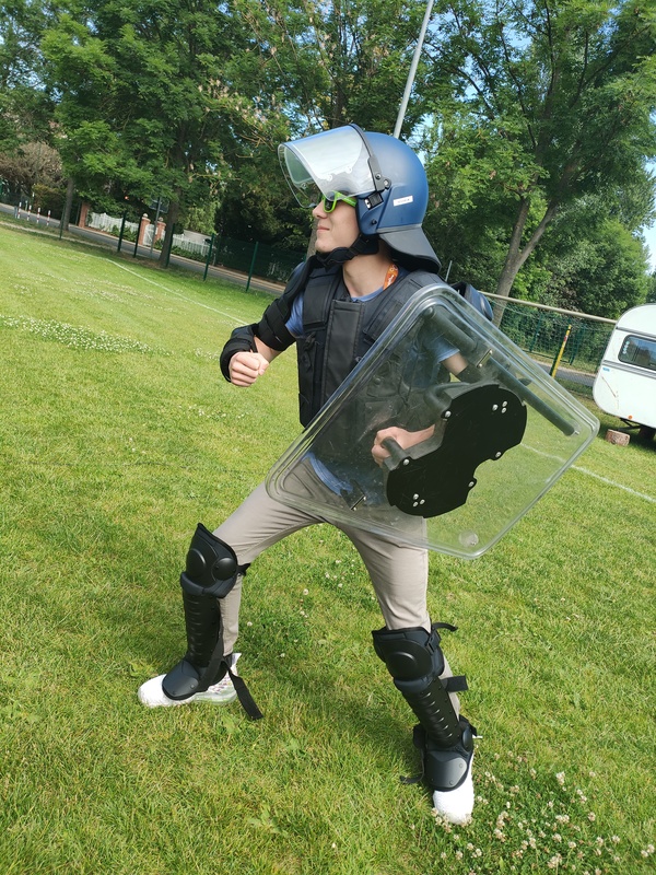 Besonders für die Jungs war das Tragen einer vollständigen Polizei-Ausstattung interessant. Auch die Anforderungen für eine Übernahme in den Polizeidienst, z.B. der Kriminalpolizei, waren von größtem Interesse.