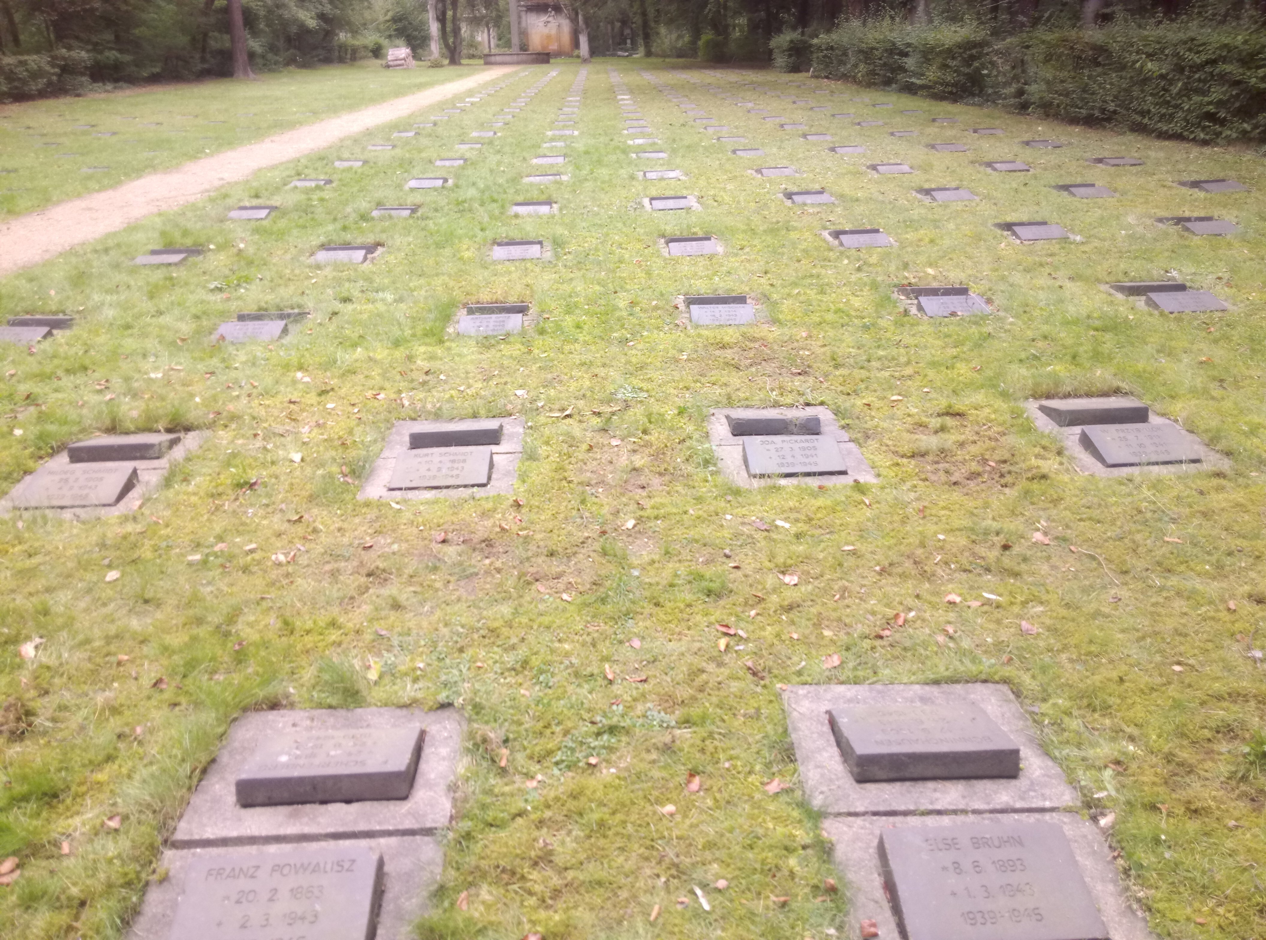 Dann fing die Arbeit mit Spaten und Harke an. Jede Gruppe bekam vier oder fünf Grabreihen. Neben dem Abstechen der Grasnarbe am Rand mussten wir immer den Grabstein herausnehmen und dann die ganze Platte putzen. Nachdenklich machte uns die Tatsache, dass auch eine Mutter neben ihrem 10 Monate alten Kind als Bombenopfer hier begraben lag.